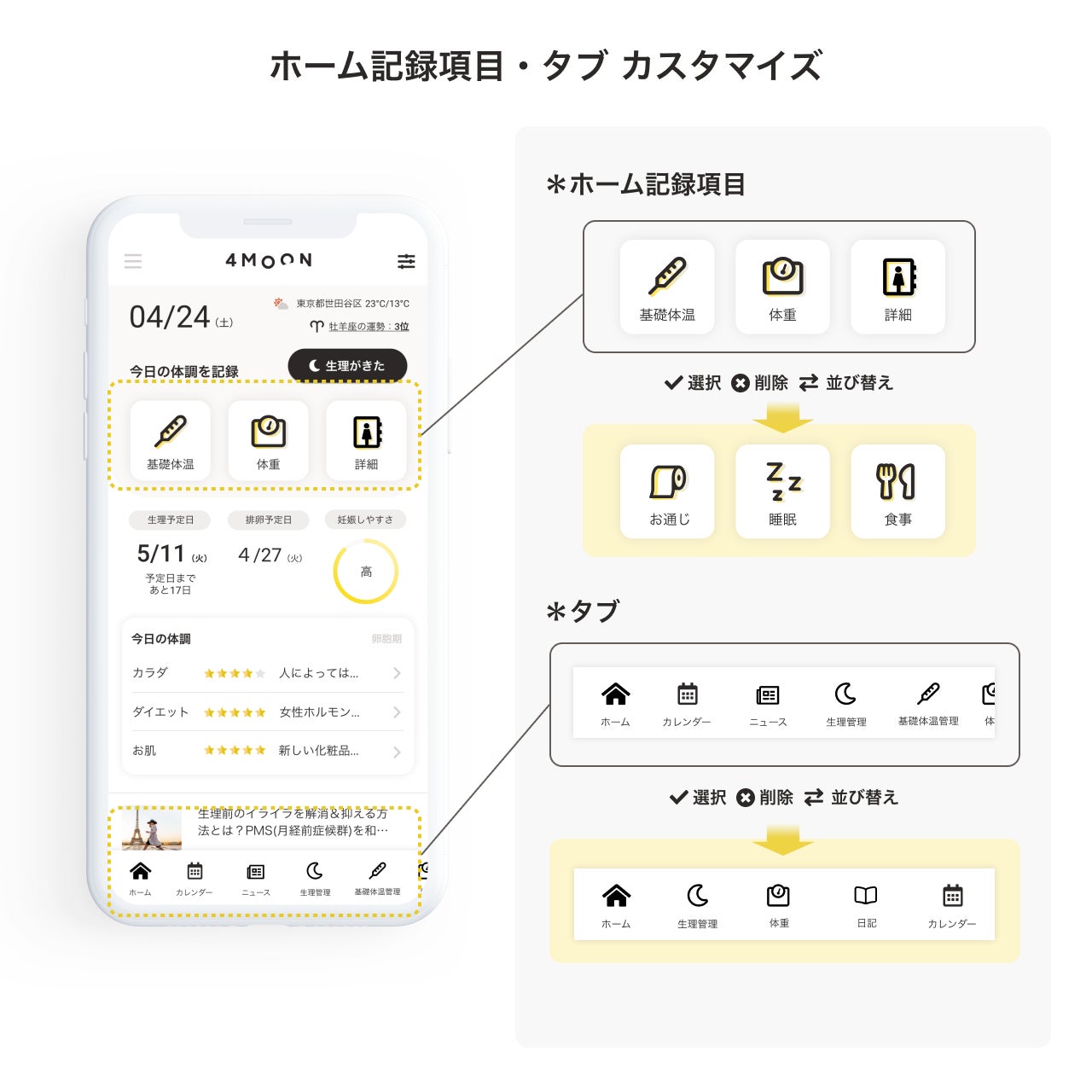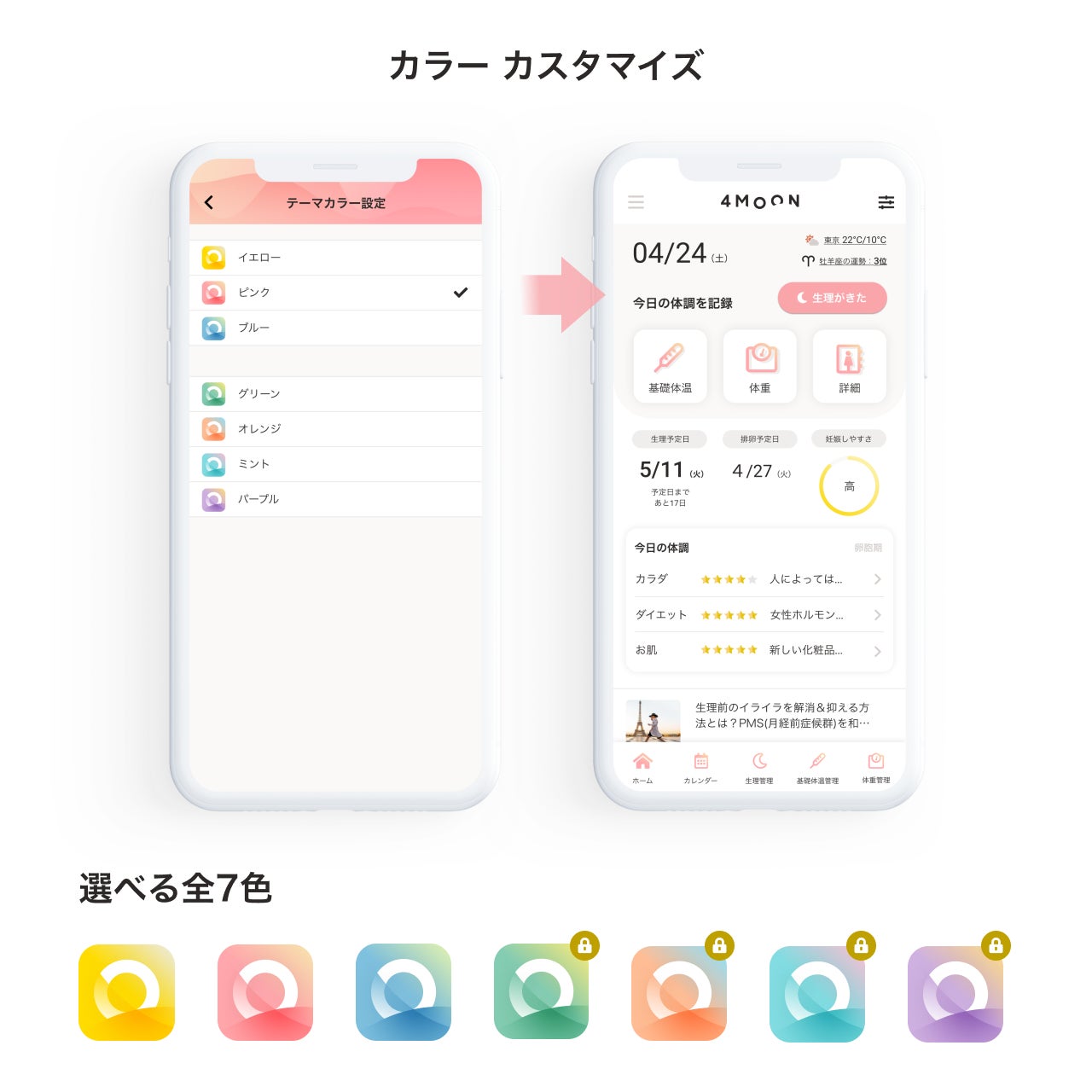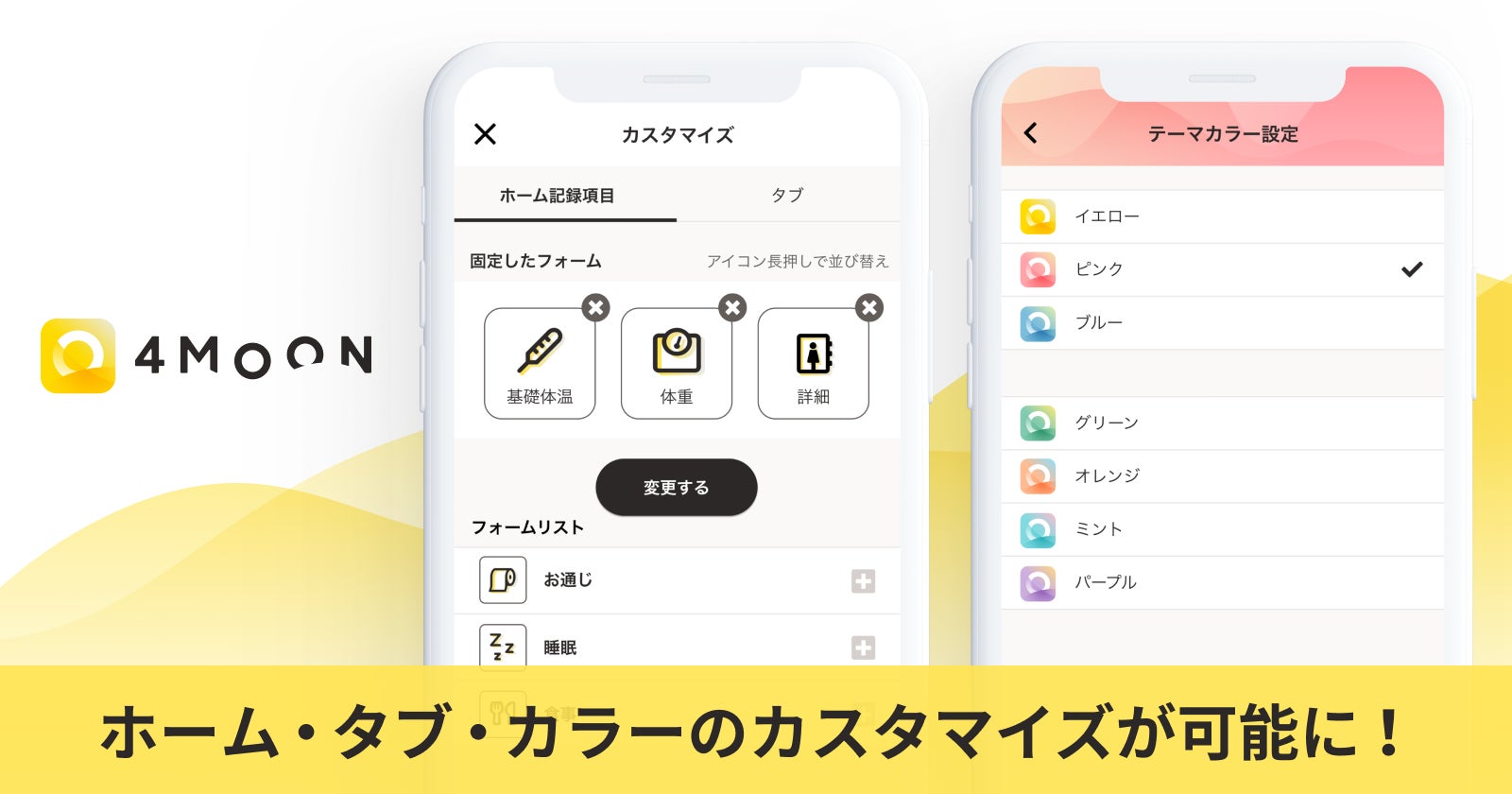 運営する生理管理/ヘルスケアアプリ『4MOON(フォームーン)』のカスタマイズ機能を強化したことをご報告いたします。