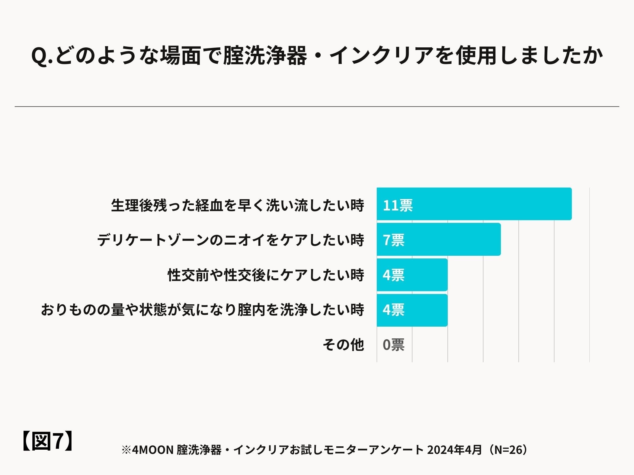 ・おりものの量や状態が気になり腟内を洗浄したい時(4票)