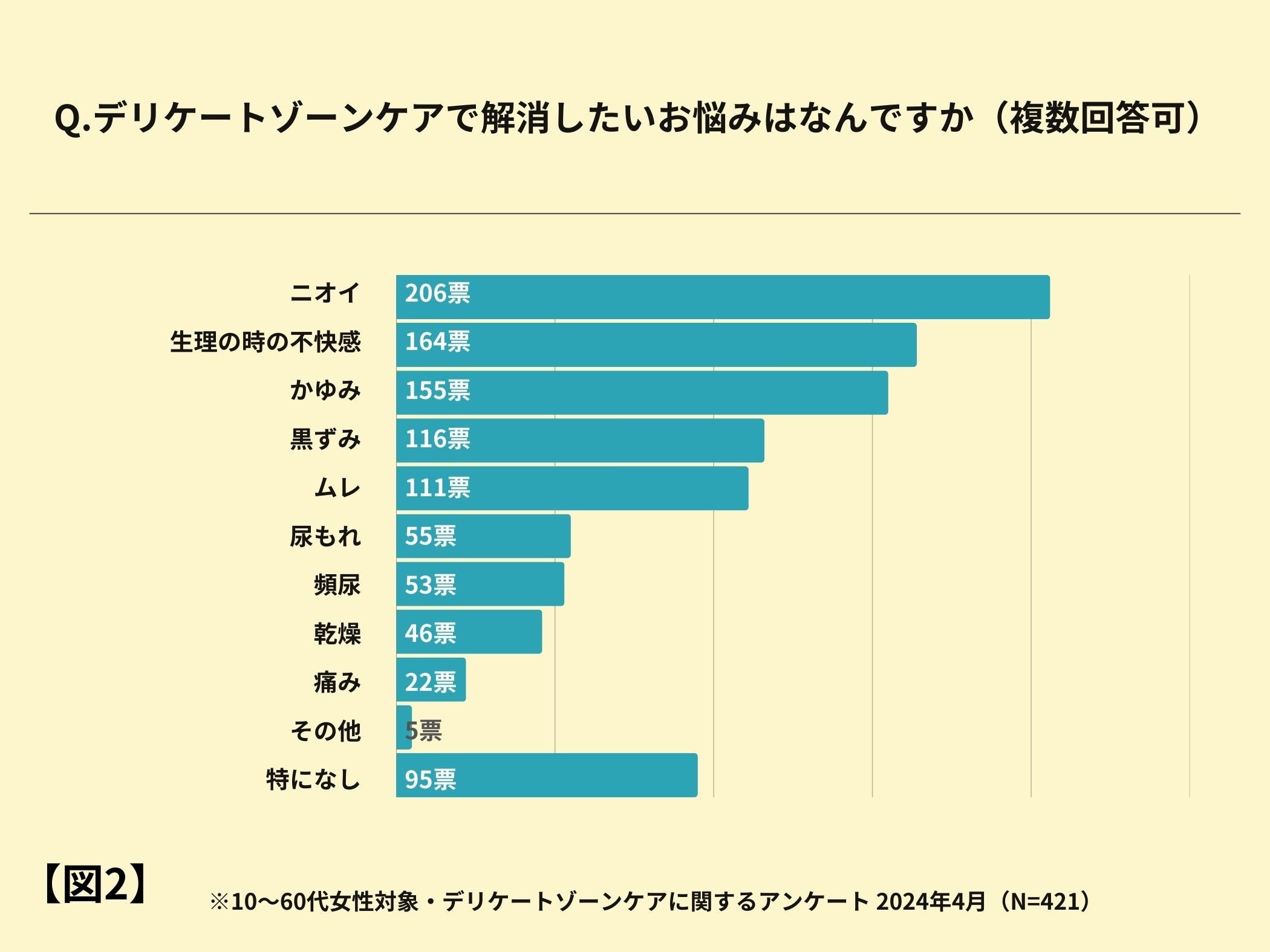 - デリケートゾーンケア関心層6割弱、悩みTOPは「ニオイ」