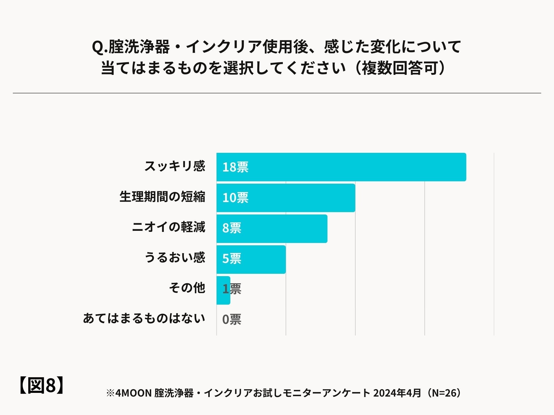 また、腟洗浄器・インクリア使用後に感じた変化について聞くと、